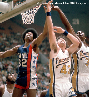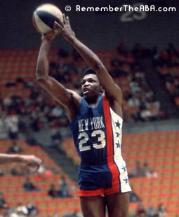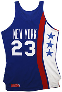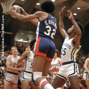 The Nets played in three ABA Finals, and won the ABA title twice, (1973-74 and 1975-76) using these uniforms. Two Hall of Fame players wore this jersey with the ABA Nets: Rick Barry and Julius "Dr. J" Erving (#32, at left photos). |