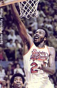 Barnes (below left) and Gerard (below right) began their careers on one of the youngest, wildest teams in professional basketball history -- the Spirits of St. Louis of the American Basketball Association. They teamed with 6-9 Maurice Lucas, who later would start alongside Bill Walton on Portland's 1977 NBA championship team, on modern basketball's only all-rookie front line, the 1974 Spirits.