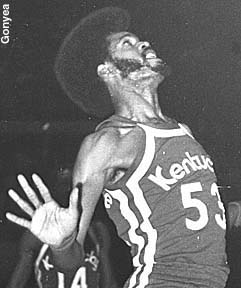 Gilmore has always been a dominating force in the ABA since his rookie year (1971-72). That year, he averaged 23.8 points (the fourth rookie in pro basketball to go over 2,000 points) 17.8 rebounds, topped the league in field goal percentage (.598) and blocked 422 shots.