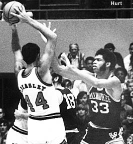 First ever ABA vs. NBA game, Abdul-Jabbar 32 points (12 in 3rd quarter); McLemore (Bucks) 15 ft. jumper with 11 seconds left in game |