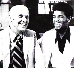 At top left, Coach Joe Mullaney greets the Baltimore press with his prized rookie, Skip Wise. Wise jumped to the ABA Claws after his freshman year at Clemson, where he attained first-team all-ACC honors. Wise had played high school basketball in Baltimore, and the team felt he would be a gate attraction. Little did the coach or player know what was ahead of them with the troubled Claws.