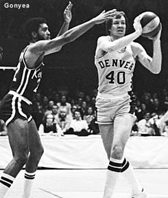 | From 1971 to 1974, the Denver Rockets had some talented players, like Byron Beck (above left, #40), Dave Robisch (above middle, #25), Ralph Simpson (above right, #44), and Warren Jabali (left, #12).