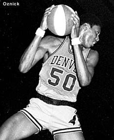But in Game Four, in front of 5,431 fans, Denver eked out another close win to tie the series. With only 30 seconds left in the game, the Rockets trailed by one point (106-105) but had the ball. In a timeout, Coach Bass drew up a clearout play for 6'2" guard Lonnie Wright. Wright was supposed to exploit his 5-inch height advantage over Oaks' defender Larry Brown, and that's exactly what he did. To the delight of the Denver crowd, Wright canned a short baseline jumper over Brown, to give Denver a 107-106 lead. The Rockets managed to hang on for a 109-108 victory. With the series tied at two games apiece, the surprised Oaks still had the home court advantage. They certainly needed it, as the series went the distance, with the home team winning each succeeding game. In the decisive Game 7, played at Oakland, the Oaks finally eliminated the pesky Rockets, 115-102. The Oaks went on breeze past New Orleans (4 games to 0) and Indiana (4 games to 1) to win the ABA Championship.