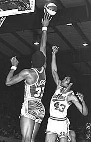 MEMORIES OF DARREN LATHROP: "I watched the Oakland Oaks during their two year existence. I went to a number of games with friends when we were 17-18 years old, many during the championship season. We tried to go to as many Denver Rockets at Oaks games as possible. I met Byron Beck because I was going to go to the University of Denver. I also met Walt Piatkowski (whose son Eric played in the NBA recently). I think Piatkowski once got in a fight with Oakland's Gary Bradds, who was our least favorite Oak. We adopted him as our favorite Rocket after that. We started to hold up signs as the "Walt Piatkowski Fan Club," and once got noticed and interviewed by the Denver radio announcer. We also once sat with somas of the wives of the Rockets.