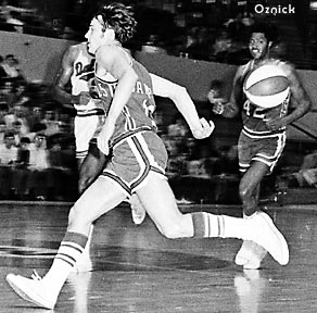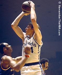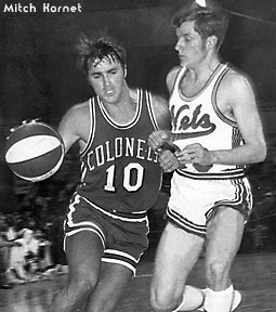 During all nine years of their existence, the Colonels had the ABA's most consistent guard, Louie Dampier. Dampier had the most assists in ABA history. But it is amazing to realize that he also scored the most points in ABA history (a very entertaining trivia question). Dampier was known for draining three-pointers with the flick of the wrist (occasionally on the wings of a fast break). |