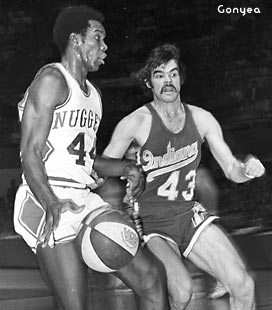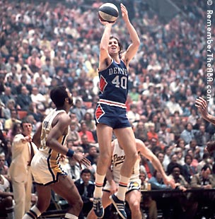 Behind the trio, Denver hit 60% from the field as the Nuggets built a 19-point lead in the 2nd quarter, 59-41. Indiana rallied behind George McGinnis, who had a sensational 39 points, 22 rebounds (13 on the offensive boards), 8 assists and 5 steals. Big George had 16 points in the third quarter alone, including a nasty dunk with 9:49 left that bent the rim three to four inches.  McGinnis got significant offensive help from two other Pacers - Billy Knight with 28 points and Billy Keller with a brilliant 22 points in 22 minutes - including four 3-point bombs.  But Ralph Simpson hit 5 of 6 free throws in the last 2 minutes to hold off the Pacers.