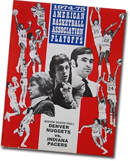 GAME SUMMARY (by Al Hoffman and Arthur Hundhausen): The Nuggets had lost only two home games the entire season, and none in the playoffs.  This pattern held true to form, as Denver beat the Pacers 131-128 in a game that really was not as close as the final score would indicate.  Denver led from wire to wire and improved its 1974-75 record at the Auditorium Arena to a gaudy 44-2.