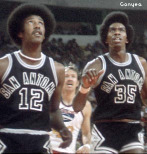 But Rich Jones (bottom center) and James Silas (bottom right) added even bigger hair AND full facial beards to top all other Spurs in the hair category.