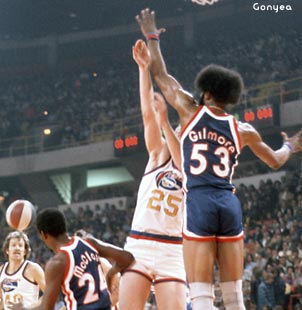 Few ABA opponents ventured into the lane to attempt a layup against Gilmore and his legendary afro.