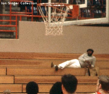 In the photos above, a Dallas fan, overcome with excitement at watching the Chaps battle the Memphis Pros, gets a more comfortable view of the action. (photos courtesy of Jon Singer)