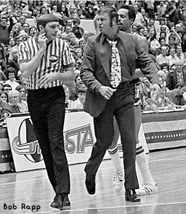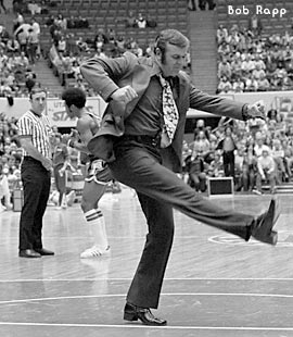 Bob "Slick" Leonard was the fiery coach of the ABA Indiana Pacers. Early in the 1972-73 season, the Pacers visited their biggest rivals, the Utah Stars. Late in the game won by the Stars, Leonard felt that the 30-second shot clock had expired before a Utah basket. After his ranting and raving gained nothing but two technicals and an ejection, Leonard exploded in a memorable fit of temper.