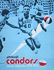 Haven Industries immediately got rid of the Pipers nickname. Understandably, it wanted to promote a new image and a new attitude for the team. The team's new front office held a "name the team" contest, open to the general public. The name "Pioneers" was selected as the winning entry, and the man who submitted the name won a $500 cash prize. At this point, things really started to get strange - even by ABA standards. A local NAIA school, Point Park College, was already using the "Pioneers" nickname. In fact, the school's offices were only five blocks from the team's offices. The school threatened immediate legal action against the ABA club if the "Pioneers" name was not dropped. At the same time, a female contestant sued the team, claiming that the winning "Pioneers" entry did not stay within the designated 25-word contest limit. Faced with an alarming amount of litigation over a mere nickname, the team avoided further chaos by dumping the "Pioneers" name and picking its own "safer" alternative - the "Condors." Why "Pittsburgh Condors"? No explanation was ever provided, although the "endangered" status of real condors seemed equally applicable to this franchise.