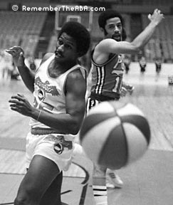 Jimmy O'Brien (above, # 44) was a Pittsburgh Condor for just the first few weeks of the 1971-72 season. Coach Jack McMahon played him a lot, saying: "He's going to be a good one. He does everything smoothly. The shooters on this club are going to buy all of his cokes. He'll be that valuable to them. He'll get everybody more points."