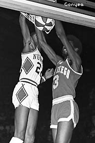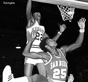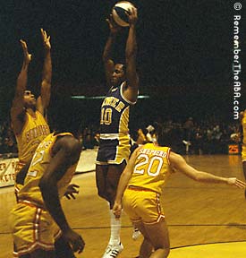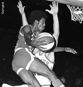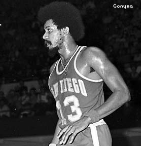 Despite all of this, the Q's were a better team during the 1973-74 season. Fortunately for San Diego, when Chamberlain arrived, he brought along Caldwell Jones -- a skinny but talented 6'7" center. Fresh out of Albany State, Caldwell had failed to come to terms with the Philadelphia 76ers during the summer of 1973. It soon became obvious that Jones was a future All-Star center. Chamberlain also signed his former friends on the Lakers team, Travis "Machine Gun" Grant and Flynn Robinson. Rookie Dwight "Bo" Lamar made a big splash, averaging more than 20 points per game. On January 13, 1974 against the Pacers, Lamar scored a team-record 50 points. Finally, rookie Tim Bassett was also impressive.
