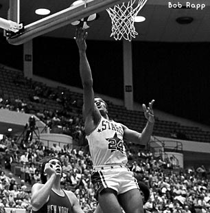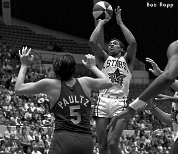 MEMORIES OF BOB RAPP: "I remember when Boone was traded to the Stars from Dallas along with Glen Combs. He was an immediate fan favorite in Salt Lake City due to his hustle and the way he was coached. As I recall, he had a vertical leap of some 43 inches that allowed him to play bigger than he actually was. When the lineup required speed, he was slotted in as a small forward. I recall him blocking other players' shots from behind as the ball left their hands. The other memorable feature about Boone was his jump shots. He could vary the trajectory of his jumper which allowed him to shoot over the likes of Artis Gilmore. On one occasion, he drove from his usual right side to behind the basket, and let loose a jumper. The ball sailed high over the backboard and went in! I also remember seeing him drive the lane against Artis, a rarity in the ABA." |