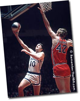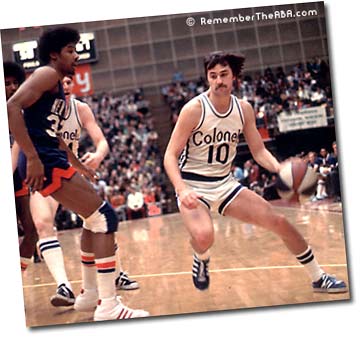 Longtime ABA players, however, were proud of the colors and even enjoyed watching the ball spin in the air during jump shots. Louie Dampier (at left, the ABA's all-time leader in three-pointers made) was one of those players.