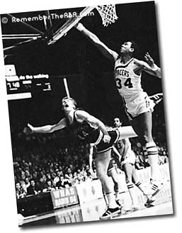 MEMORIES OF PAT COSGROVE: It is a shame Mel Daniels doesn't get the respect that he earned. During the first six years of the ABA he was as good as Nate Thurmond. He certainly deserves to be in the Hall Of Fame before Walt Bellamy. During Game 5 of the 1971-72 ABA Finals against the Nets, Daniels made a couple of plays (in succession) that I'll never forget. As I recall, the series was tied 2-2 and the Nets jumped out to a huge lead on the Pacers home court. The Pacers staged a wild rally -- mainly due to a 3-point barrage by Billy Keller. However, the Nets looked like they would hold on for the upset. Rick Barry hit a couple of big hoops and then made a spectacular move to get past Roger Brown. He seemed to be cruising in for an easy left-handed layup. But Daniels came out of nowhere to reject the shot right into the hands of Freddie Lewis. Lewis then led the break and dished off to a hard-charging Daniels -- who dunked and was fouled. The momentum reverted to the Pacers and they won that crucial contest. If this sequence had occurred in the NBA Finals, you can be sure that we would have seen the film replayed as much as Willie Mays' catch in the '54 World Series."