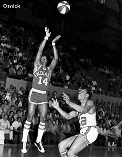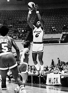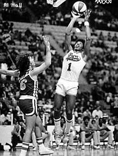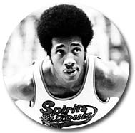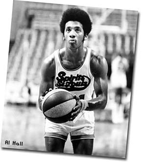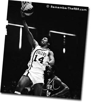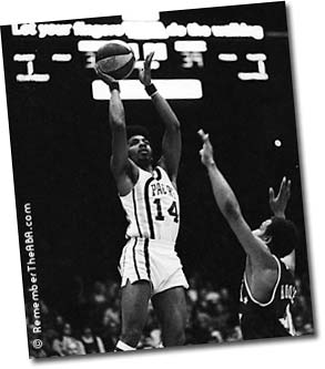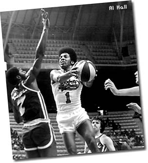 Freddie Lewis started his ABA career with the Pacers (above left) and, by the end of the 1973-74 season, was their all-time leader in assists, free throws and games played. In some ways, he was less appreciated than perennial ABA All-Stars Roger Brown and Mel Daniels - his number has not yet been retired by the Pacers. But, he was probably the most important ingredient to each of the Pacers' three ABA titles. After the Pacers lost to Utah in the 1974 ABA Western Division Finals, Pacers management decided to "clean house." Indiana traded Lewis, plus the other longtime Pacer veterans Brown and Daniels, to the Memphis Sounds for backup guard Charlie Edge and cash. Given how Lewis played during the last two years of the ABA, the Pacers lived to regret this trade.Lewis' stay with the Sounds was very short - only five games in October of 1974 (above middle). His play with the Sounds was impressive - - impressive enough to be traded yet again. The Sounds were desperate for a veteran center after Daniels slipped in a bathtub, threw out his back, and was lost for several months. So Memphis quickly shipped Lewis to the Spirits of St. Louis in exchange for Tom Owens.The Spirits were desperate for a veteran guard and Lewis delivered (above right vs. his "new" former team, the Sounds). He made the 1975 ABA All-Star team and won MVP honors at the 8th Annual ABA All-Star Game in San Antonio. He quarterbacked the Spirits to an unlikely playoff berth, and then helped St. Louis beat the heavily favored Nets in the first round of the 1975 ABA Playoffs (hitting the series-winning shot at the buzzer). In the next round against the eventual champion Kentucky Colonels, the young Spirits held their own. But they succumbed after Lewis sprained an ankle in Game 4 at St. Louis.Incredibly, at the end of his ABA career, Lewis had played in 106 ABA Playoff Games (an average of more than 10 per season). |