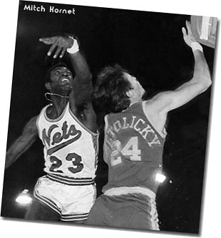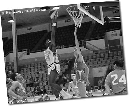 Drafted by the NBA Boston Celtics and was their final cut in the fall of 1964. One of the true stars of the early ABA. Member of the ABA West All-Star team in 1968 (with Oakland Oaks) and ABA East All-Star team in 1970 (with New York Nets). Known for his phenomenal drives and twisting shots. Stong, quick and aggressive with great ball and body control, could spin in mid-air and shoot with either hand. In Spring of 1968, led New Jersey Americans to tie for last playoff spot. in 1969-70, led the Nets to their first full playoff series in which the Nets carried the Colonels to 7 games. Fan favorite at Island Garden. Played for six ABA teams in four years.