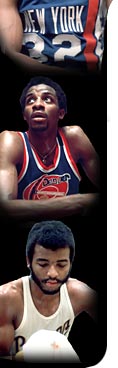 If you can identify any of the pro basketball players and coaches pictured above and to the left (click on them to see if you're right), then you remember the "red, white and blue" league: the defunct American Basketball Association.